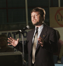Charlie Atherton, flew to the forum from Lake Charles, Louisiana.