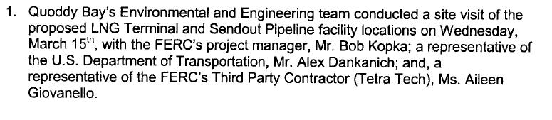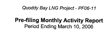 Following was copied from Quoddy Bay LLC's report as filed on the FERC LNG Docket No. PF06-11: